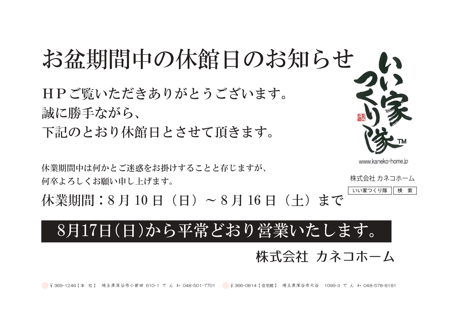 2025.08.09 2025 お盆期間中の休館日のお知らせ